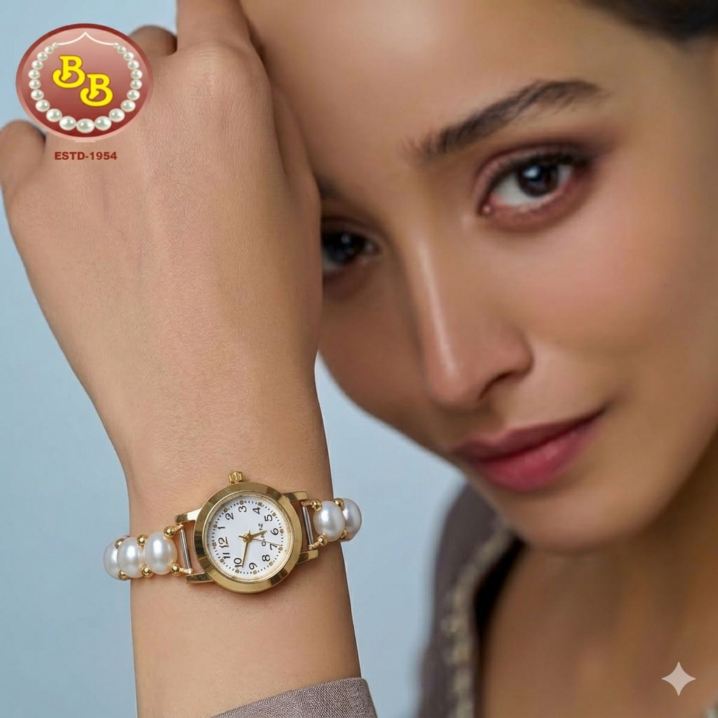 3 Lines Natural Pearls & Stone Rings Combination Watch