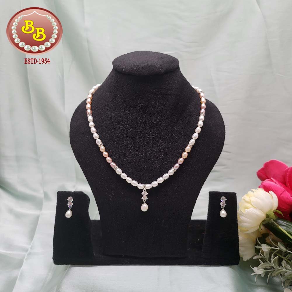 2 Lines Natural Pearls Mala With Classy Pendant Set