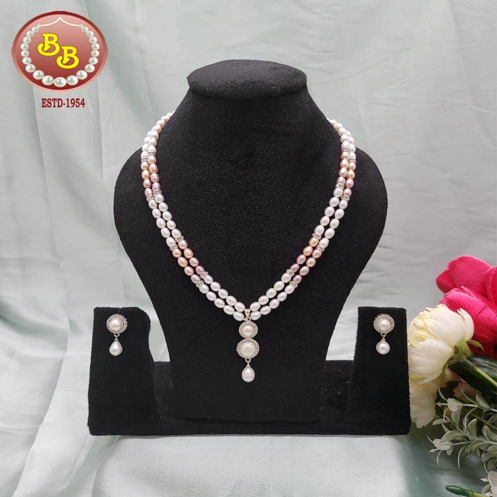 2 Lines Natural Pearls Mala With Classy Pendant Set