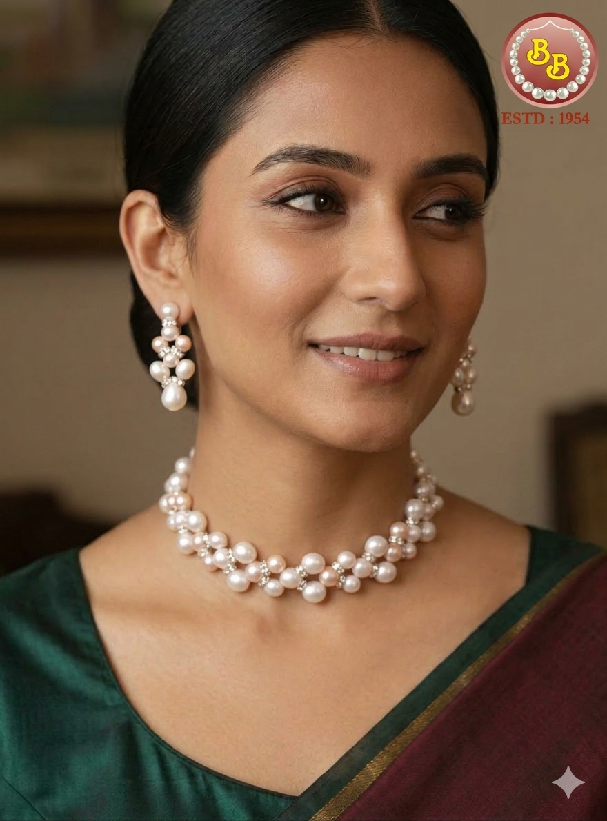 Crafted with precision and attention to detail, this choker set reflects Sri Bansilal Pearls’ commitment to quality and excellence in pearl jewelry. It’s not just an accessory; it’s a statement of style and tradition. Add this timeless piece to your collection and let its elegance speak for itself.