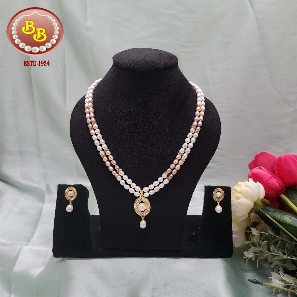 2 Lines Natural Pearls Mala With Classy Pendant Set